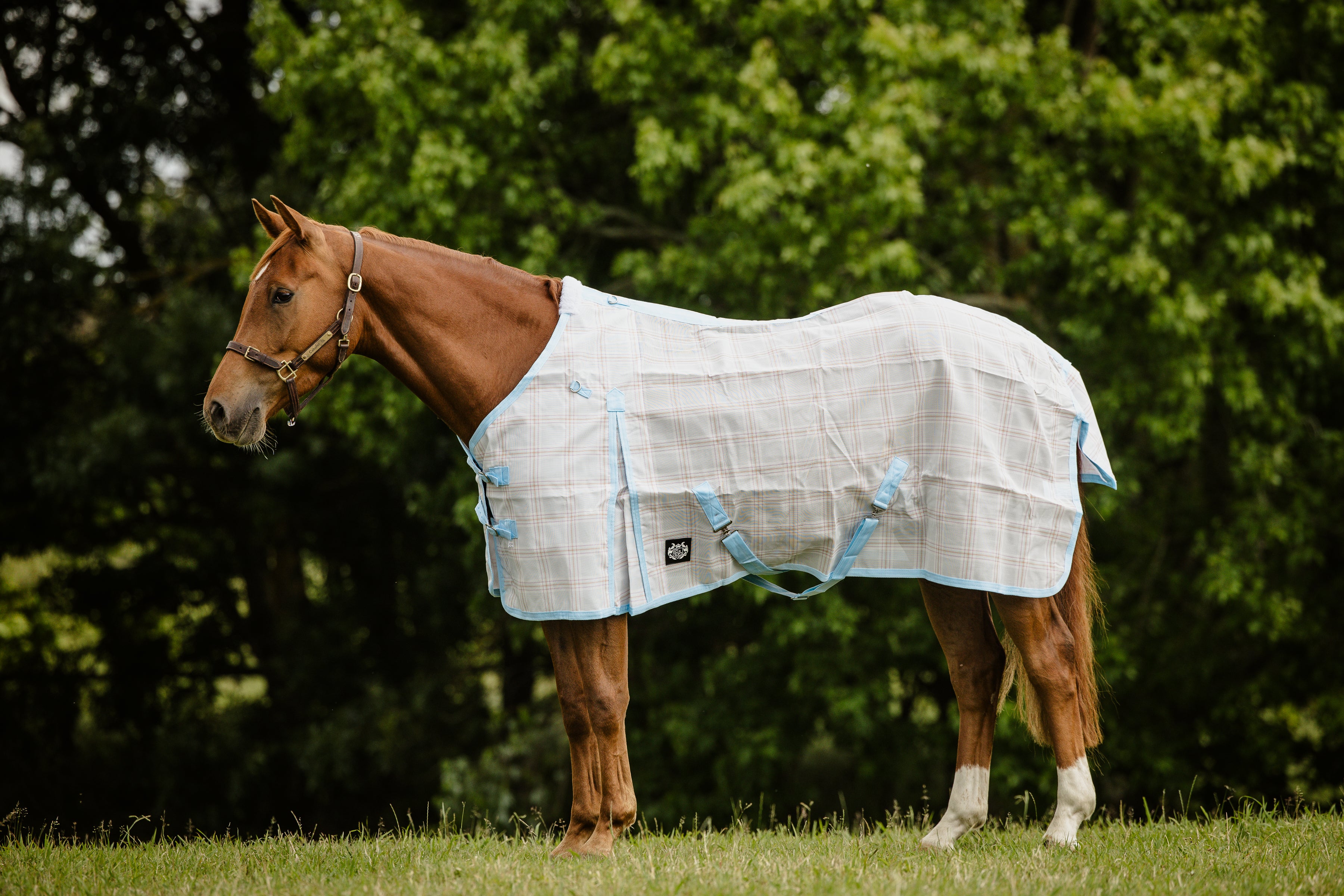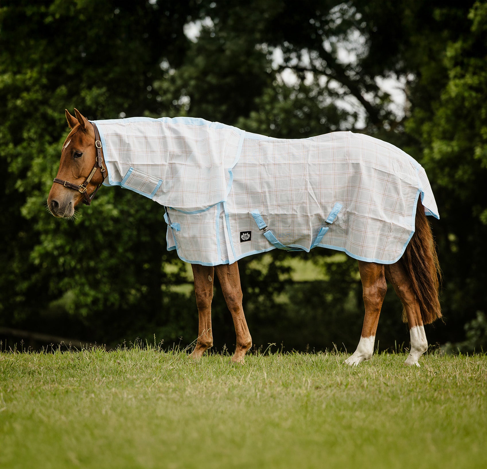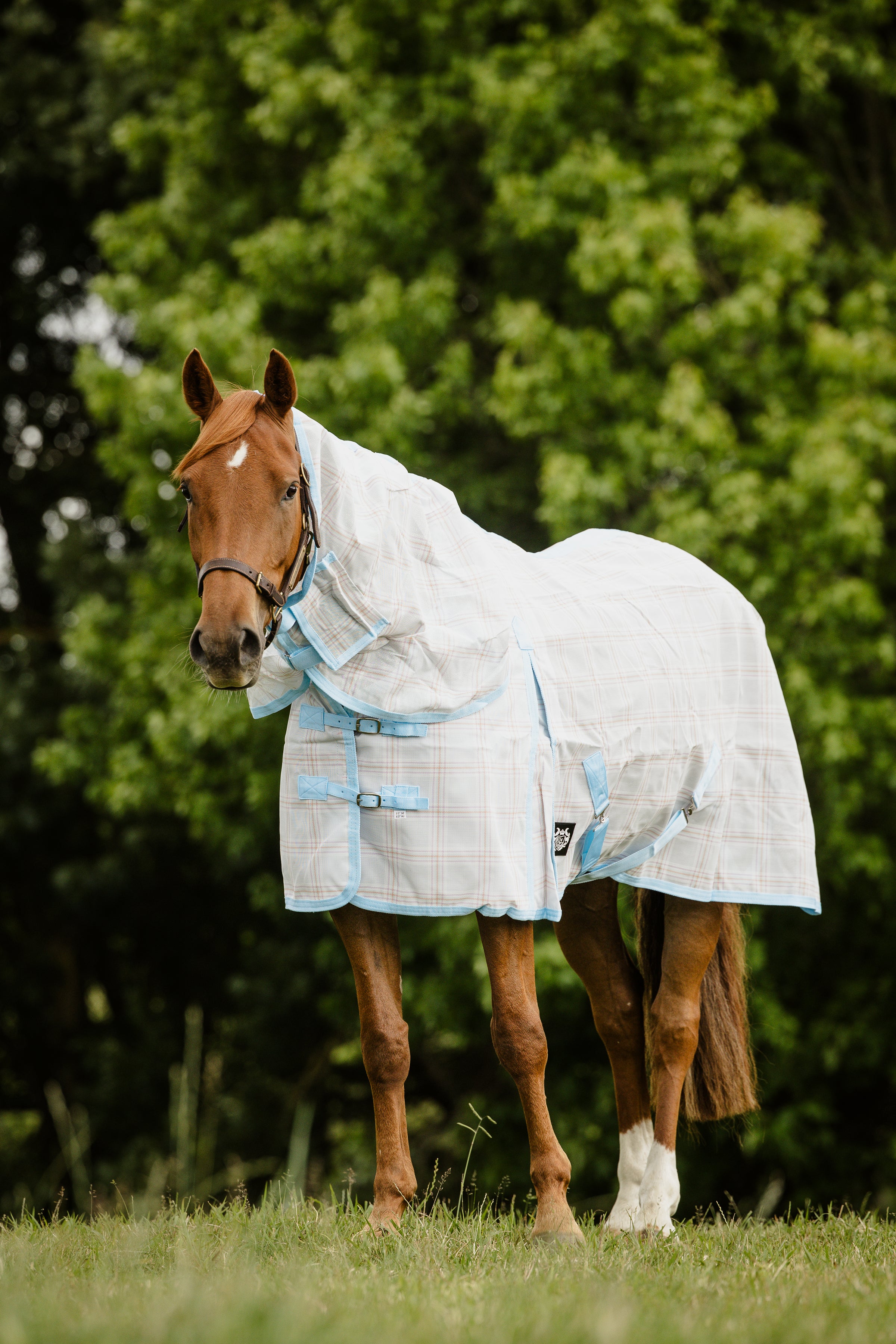 Made from super strong PVC Mesh material in several colour combinations. These rugs will withstand rough treatment. Very cool and breezy for hot summer days, totally sun reflective providing UV protection and It protects horses from insects all summer long. Has good quality satin in mane and shoulders. Shoulder gusset for freedom of movement. Belly straps to hold the rug in place.
